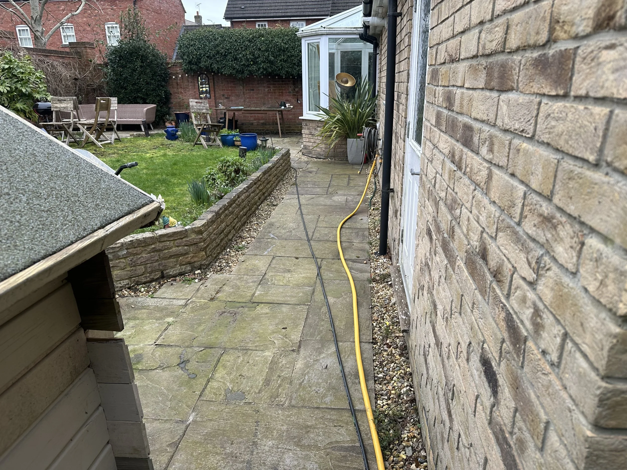 For most pressure washing work, we connect to the property’s outdoor tap to ensure a consistent water supply. We also carry an onboard water tank for locations where access isn’t available.